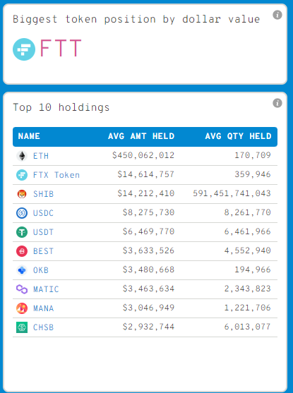 So akkumulierten die Whales (die Top 1000 Ethereum-Adressen) in den letzten 30 Tagen große Mengen an FTT. Inzwischen übersteigt der US-Dollar Wert der FTT-Token der Whale-Adressen sogar die der gehaltenen Shiba-Inu Coins. Außerdem ist die größte Position (in US-Dollar) der Whale Adressen in FTT. Durchschnittlich halten die Whale-Wallets aktuell FTX Token im Wert von rund 15 Millionen USD. “Big Money” scheint also bezüglich des FTX Token optimistisch zu sein.