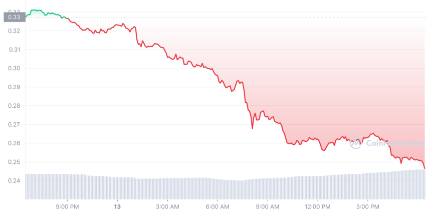 Nachdem die ersten News über die Kompromittierung durch den FTX erschienen sind, fiel der SRM Kurs erneut um 34 %. Zum Zeitpunkt der Veröffentlichung des Artikels wird der SRM Preis bei 0,2617 US-Dollar gehandelt.