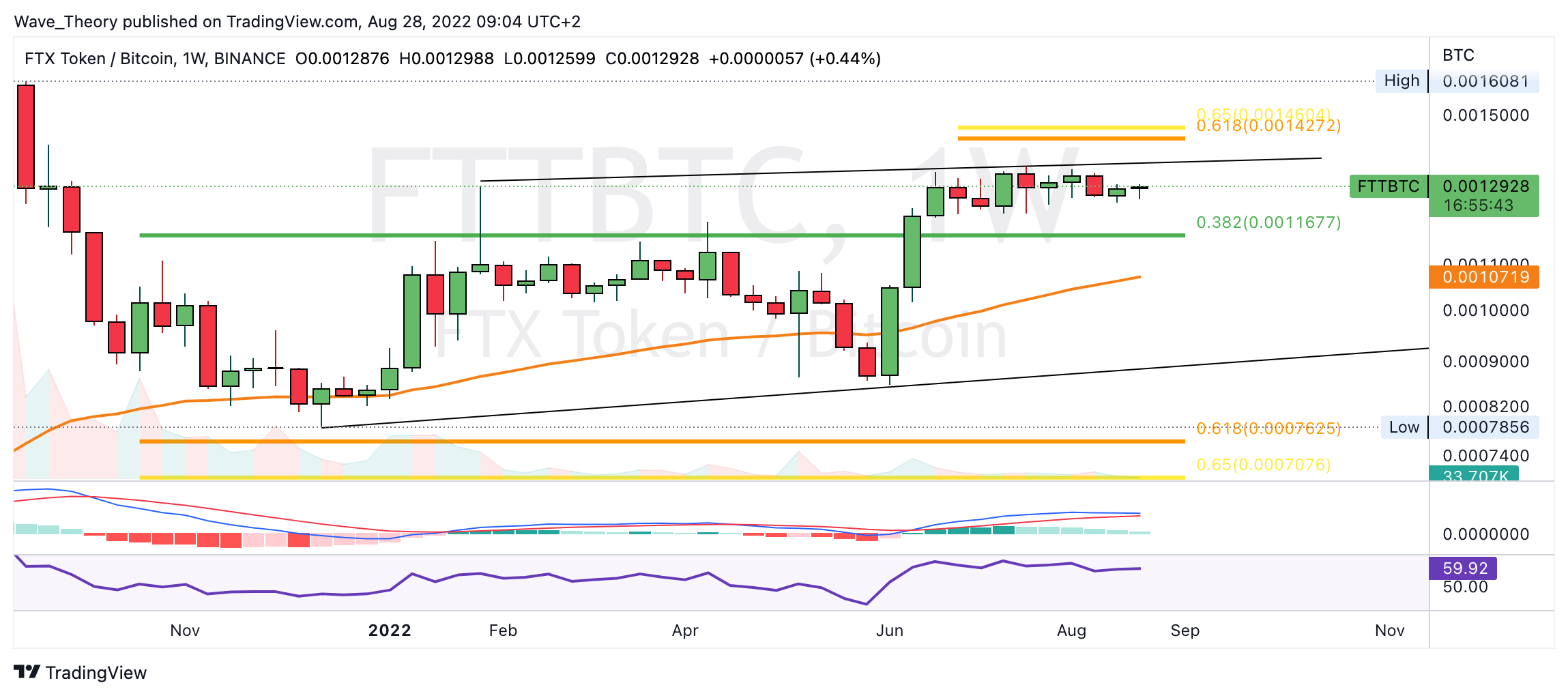Nach unten hin findet der FTX Coin bei rund 0,001167 BTC signifikante Unterstützung.