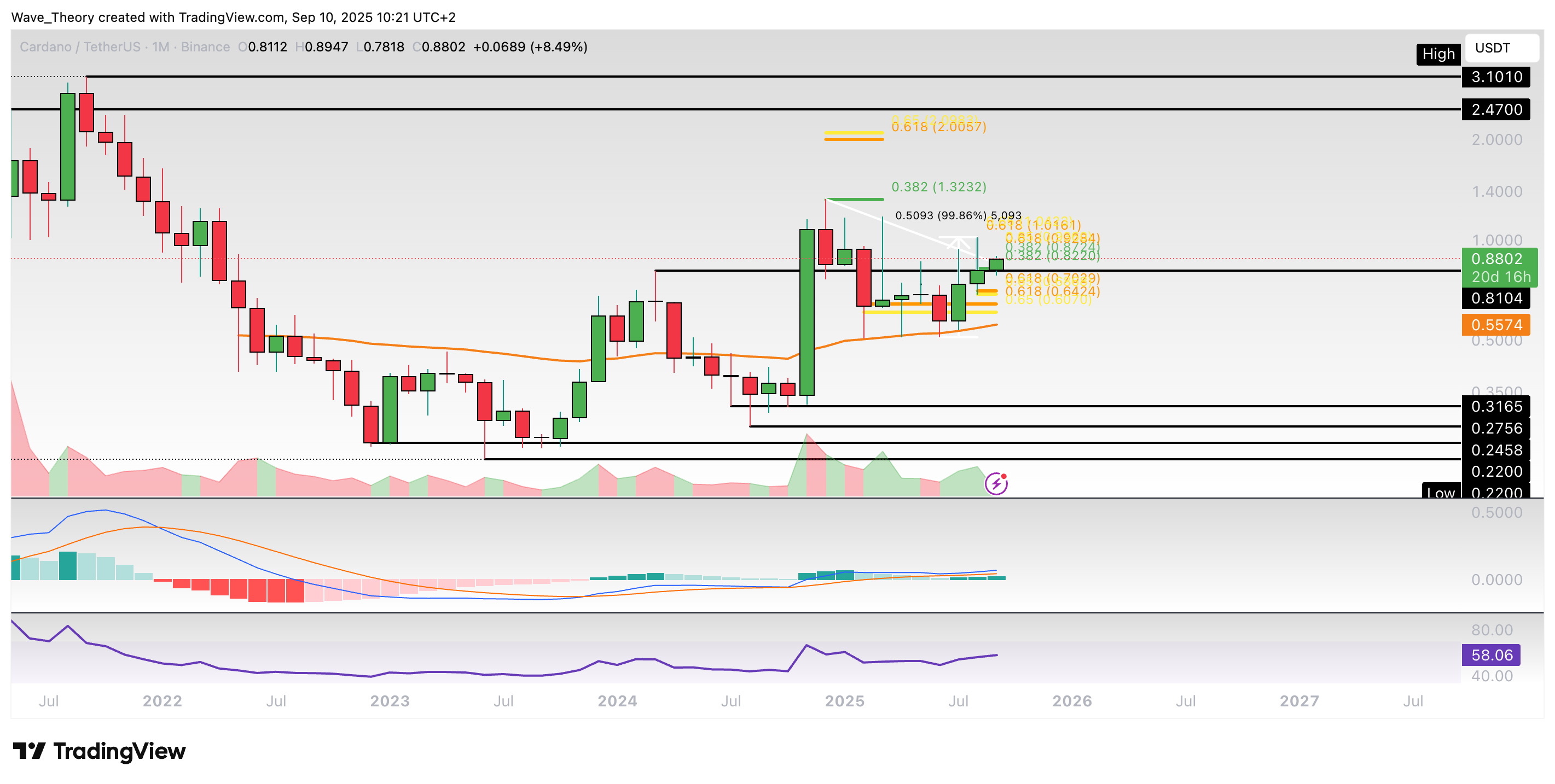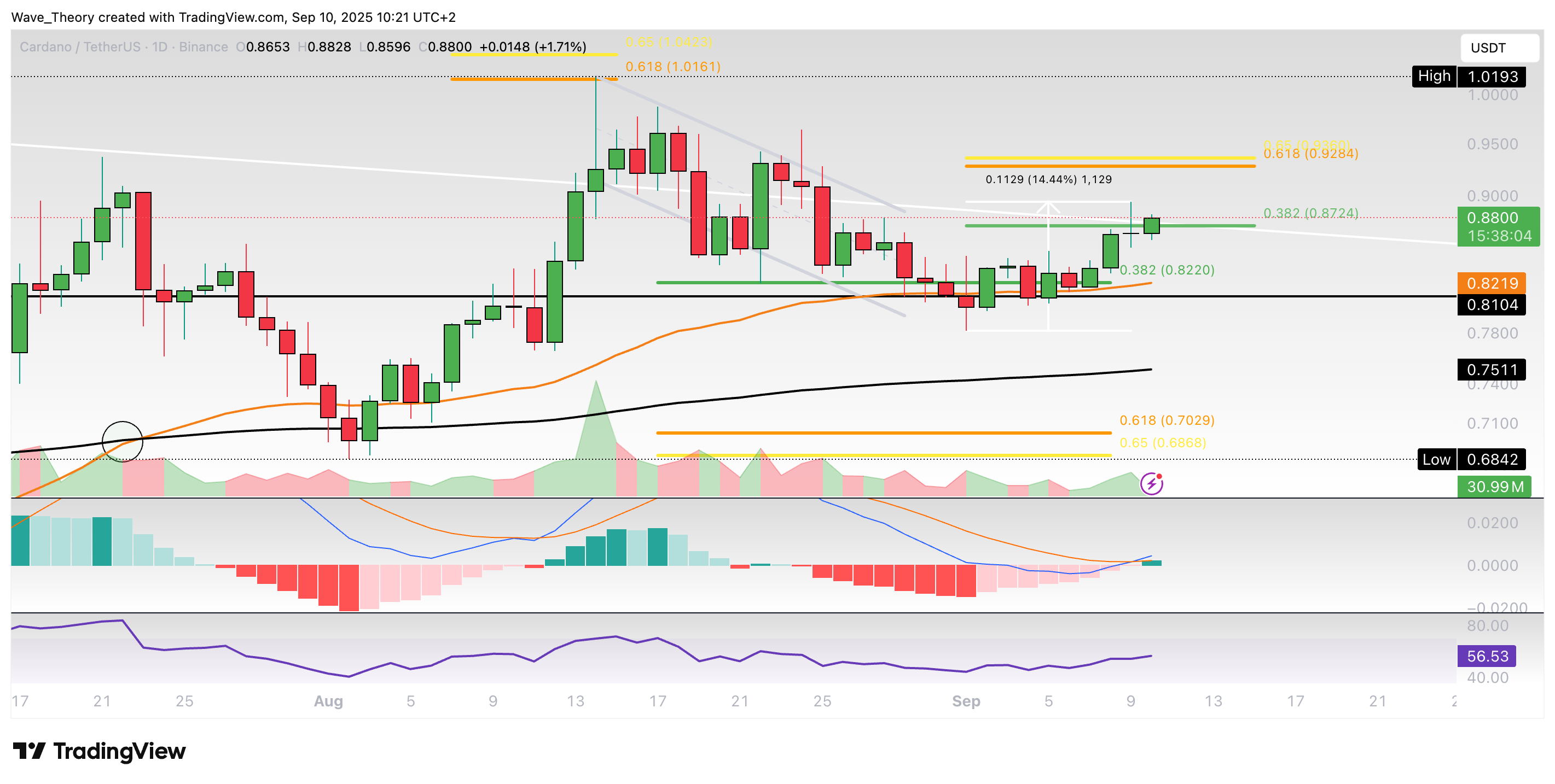 Bricht der Cardano Kurs jetzt den 0,382 Fib Widerstand bei rund 0,872 USD?