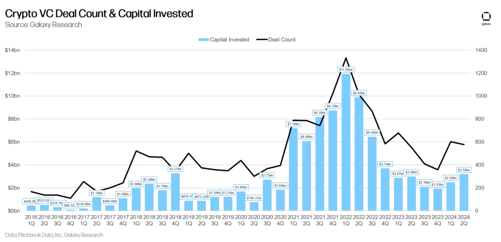Diese Initiative spiegelt einen breiteren Trend von gesteigerten Venture-Capital-Investitionen im Blockchain-Sektor wider. Laut einem Bericht von Galaxy Digital Research im Juni wurden im zweiten Quartal 2024 von Venture-Capitalists 3,19 Milliarden USD in auf Krypto und Blockchain fokussierte Unternehmen investiert. Dies markiert einen Anstieg von 28 Prozent im Vergleich zum Vorquartal, trotz eines leichten Rückgangs bei den Deals.
