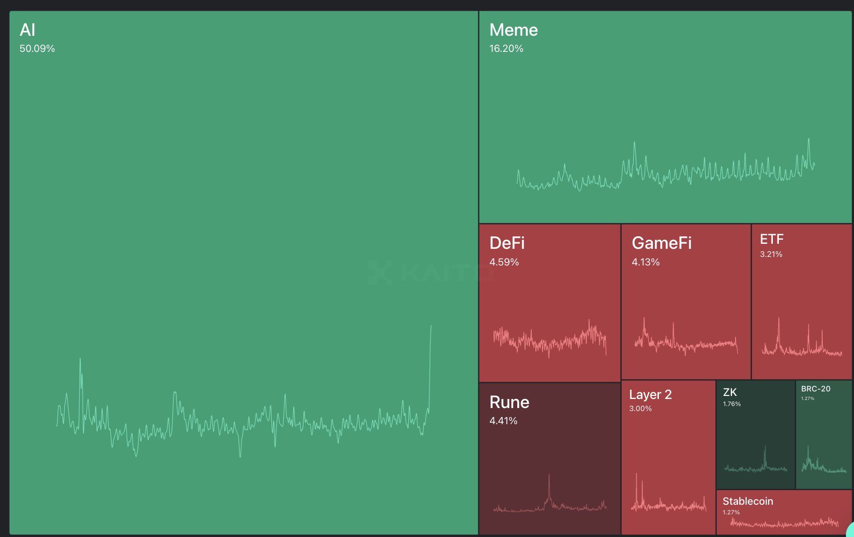 „Fünfzig Prozent Mindshare für KI. So etwas habe ich noch nie gesehen”, kommentierte Investor Miles Deutscher hier.