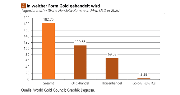 Der Londoner Goldmarkt ist bei weitem das größte globale Zentrum für außerbörsliche (und vor allem nicht öffentliche) Transaktionen (OTC).