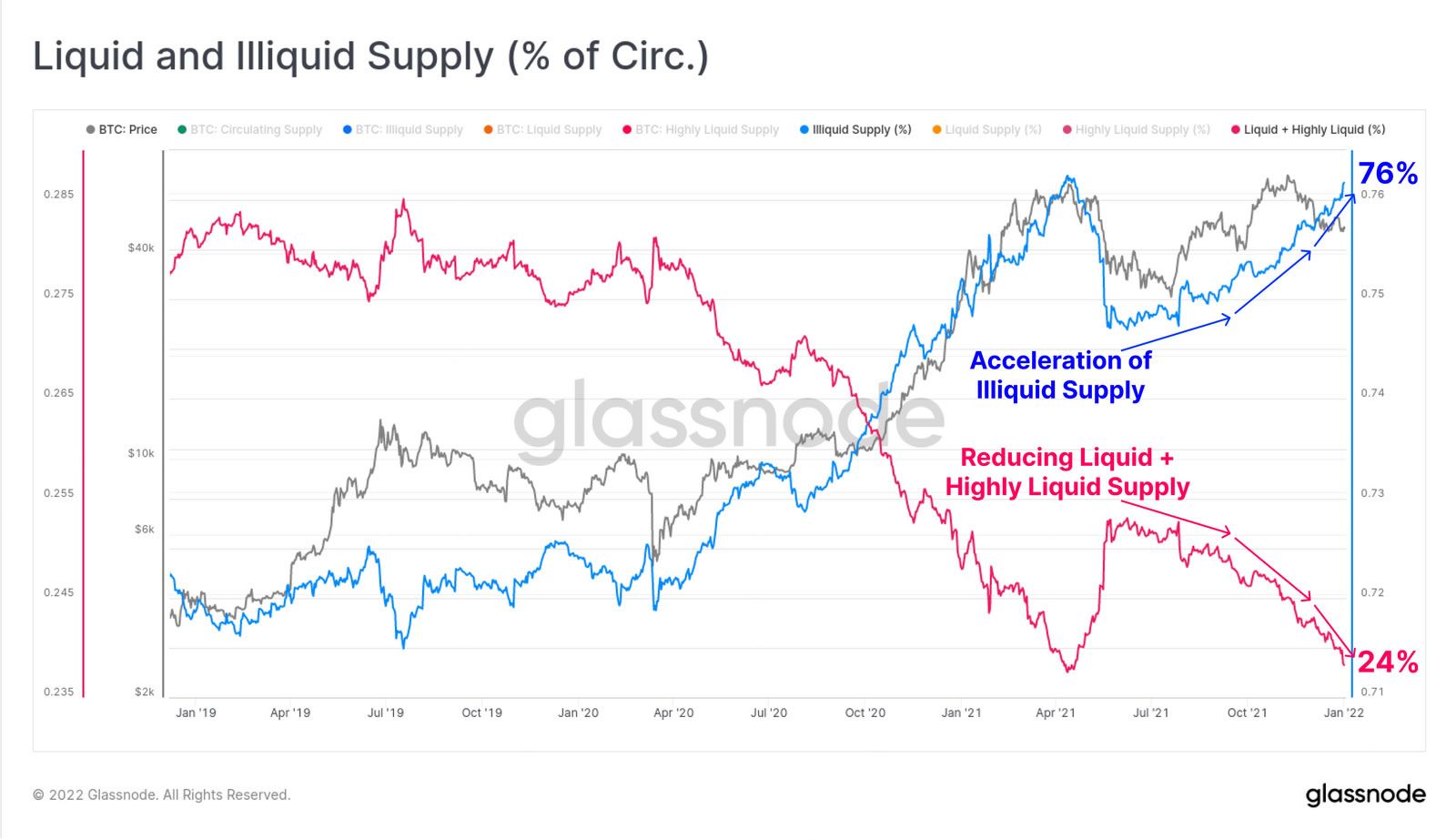 „Wir sehen, dass es in den letzten Monaten des Jahres 2021, selbst als die Preise korrigierten, einen Trend zum Transfer der Coins von liquiden in illiquide Wallets gegeben hat.“