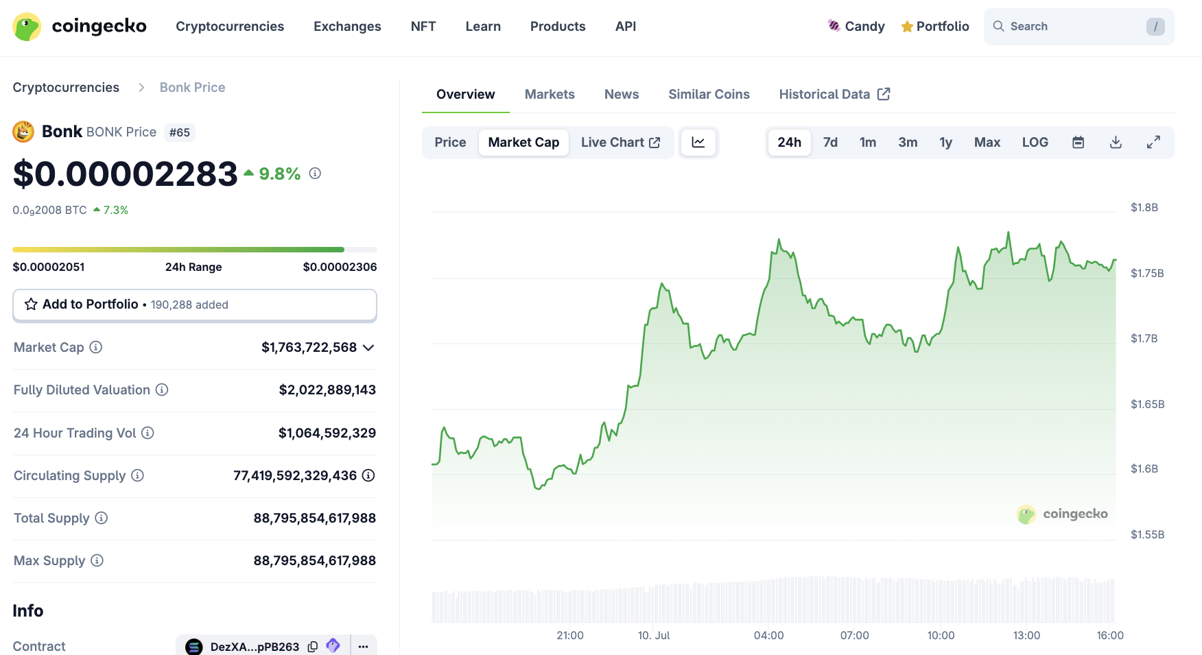 BONK zum Beispiel ist auf der Liste nach einer Woche starker Leistung und steigt heute weiterhin dramatisch an: