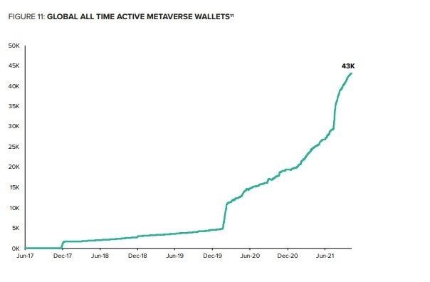 Laut dem Grayscale Report liegt die Anzahl der aktiven Krypto-Metaverse-Adressen bei gerade einmal 43.000 (!). Im Vergleich zu den knapp 3 Milliarden Facebook Accounts oder den 1 Million Shiba Inu Wallets ist die Zahl noch ziemlich klein.