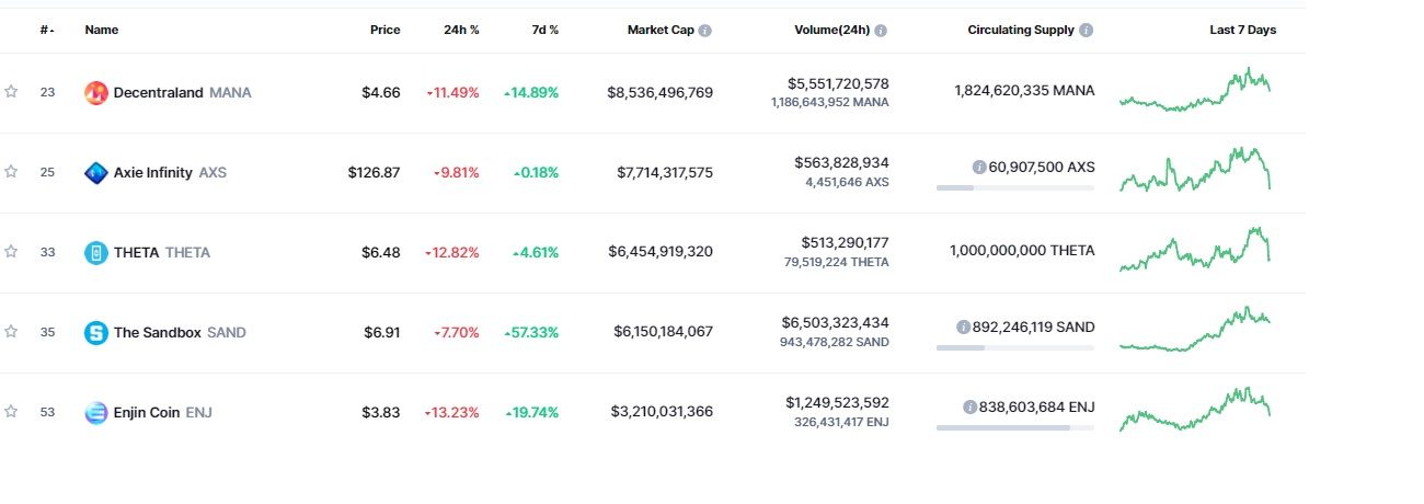 Gleichzeitig wurden Metaverse und Gaming Token seit den News, dass sich Facebook in Meta umbenennt, im Krypto-Markt gehypt. Coins wie z.B. Decentraland (MANA), The Sandbox (SAND) oder Axies Infinity (AXS) konnten in den letzten 7 Tagen eine solide Performance hinlegen, während die großen Altcoins (wie z.B. Cardano oder Ethereum) und auch der Bitcoin Kurs größere Verluste verzeichneten. Profitieren diese Coins nur von dem aktuellen Hype oder steckt in diesen wirklich auch ein größeres Potenzial?