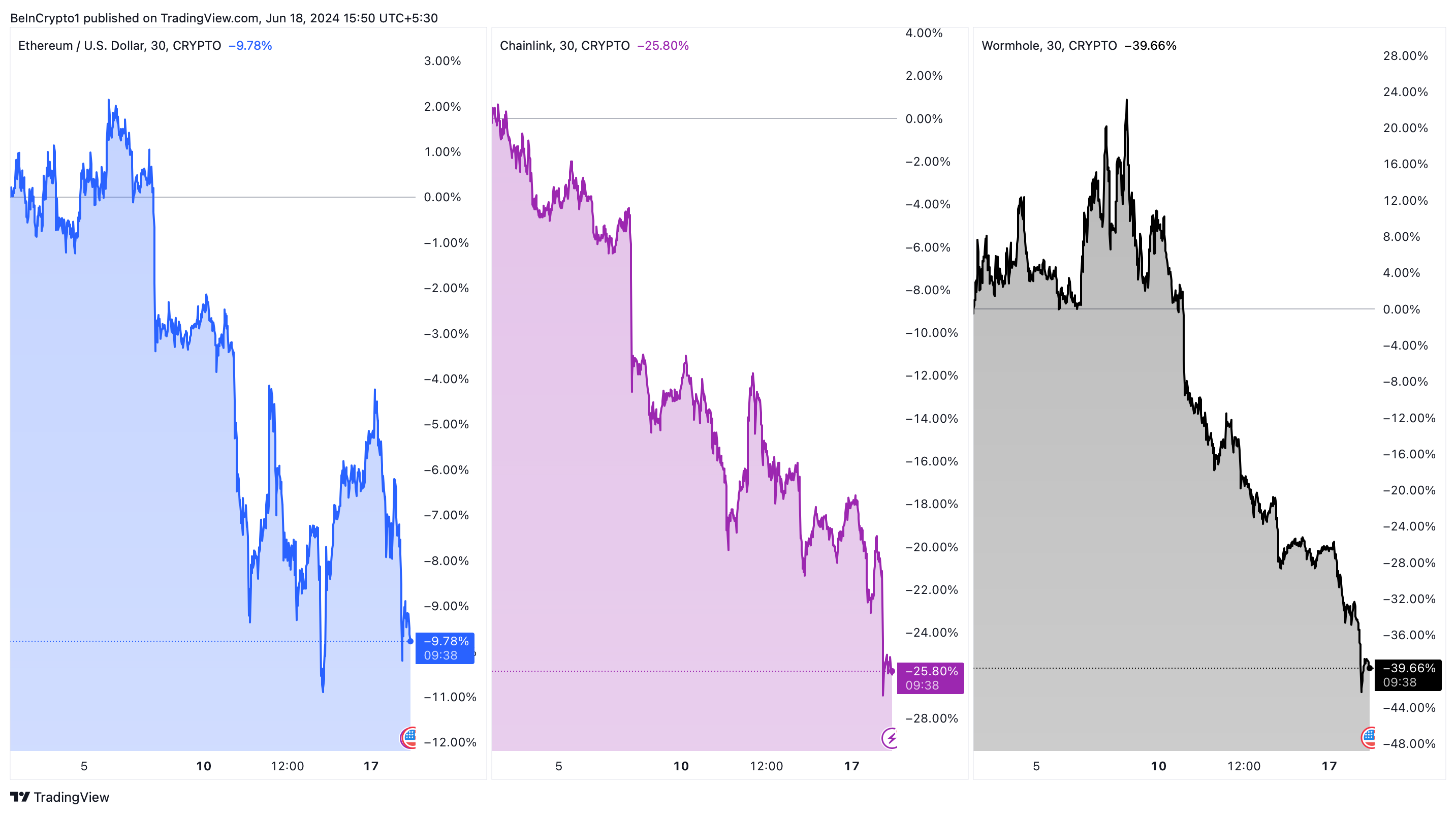 Zum Beispiel verzeichnete Ethereum einen bemerkenswerten Rückgang von über 10 Prozent, Chainlink zeigt einen Abschwung von 26 Prozent, und einige Investitionen, wie Wormhole, erlitten erhebliche Verluste von über 40 Prozent im letzten Monat.