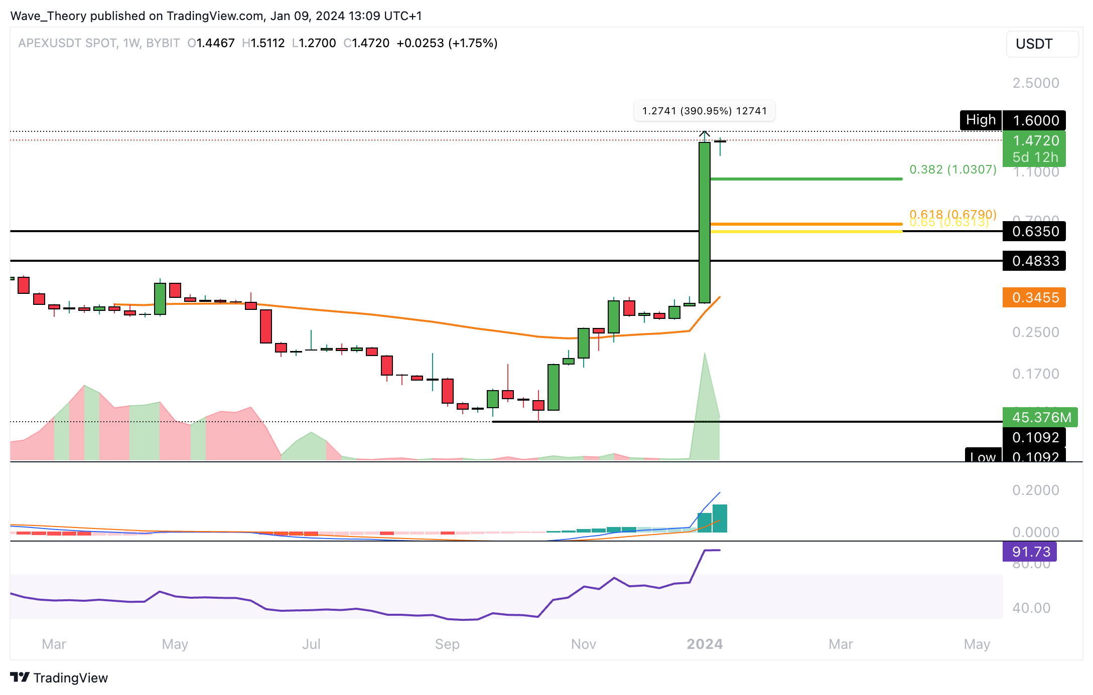 Im Wochenchart von ApeX zeigen sich die Indikatoren bullisch