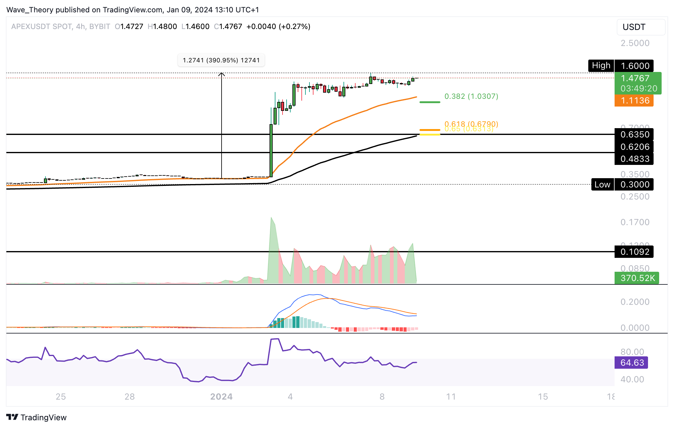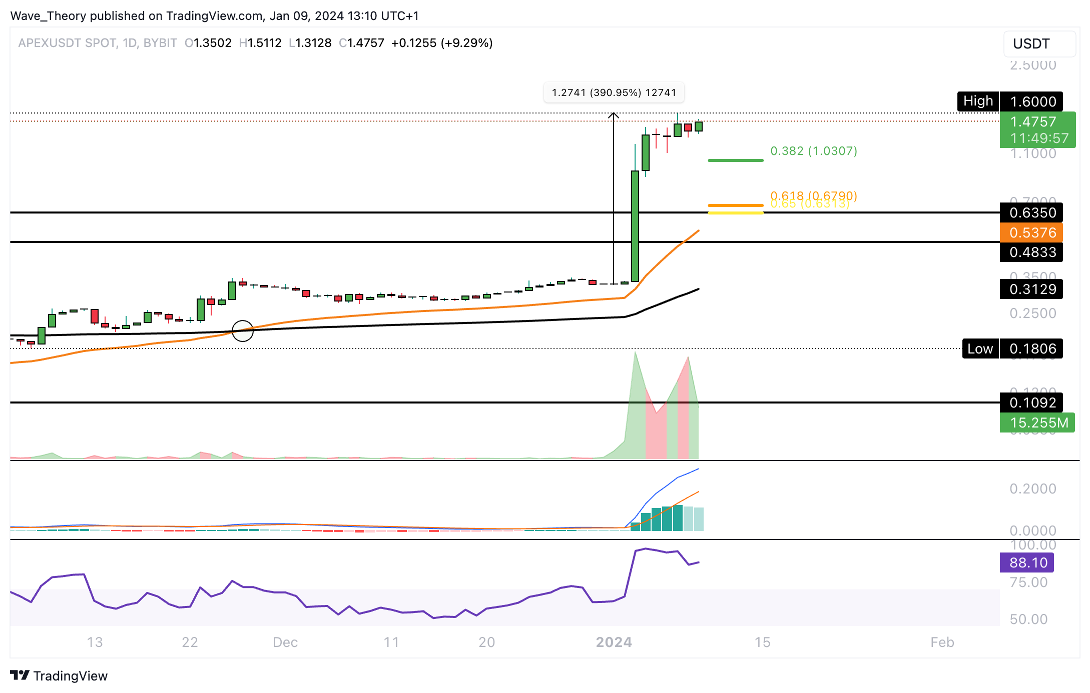 In diesem Monat konnte der Coin rund 391 % steigen. Damit befindet sich der ApeX Kurs auf einem neuen Allzeithoch.