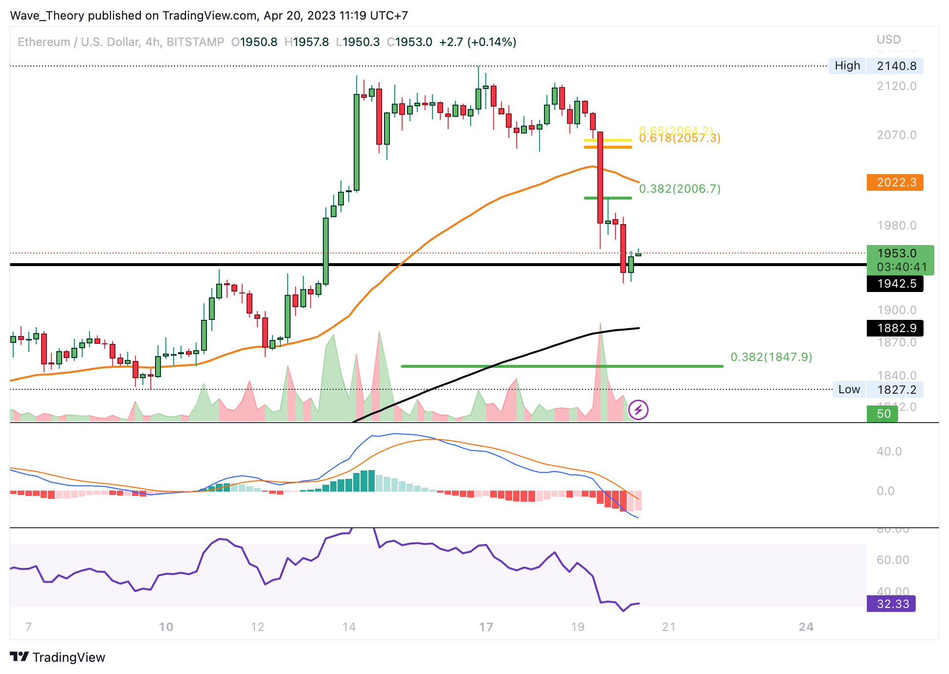 Sofern Ethereum die nächsten Fib Widerstände bei rund 2.007 USD und 2.060 USD nicht überwindet, korrigiert der ETH Kurs womöglich zur nächsten Fib Unterstützung bei rund 1.850 USD.