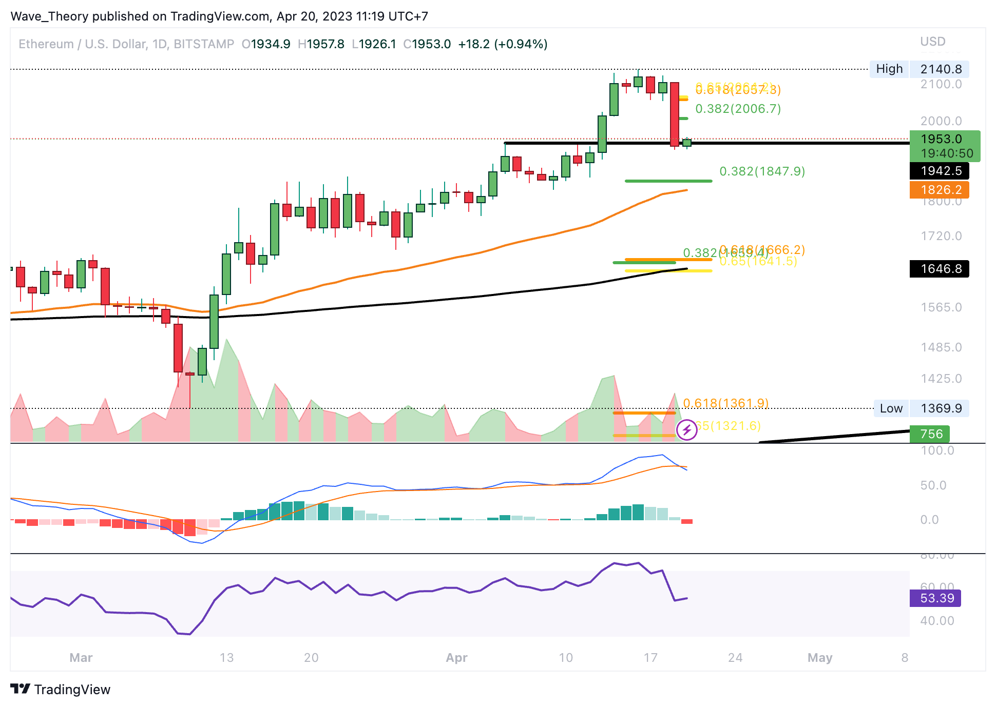 Sponsored- Der ETH Kurs hat den 0,382 Fib Widerstand bei rund 1.910 USD überwunden.