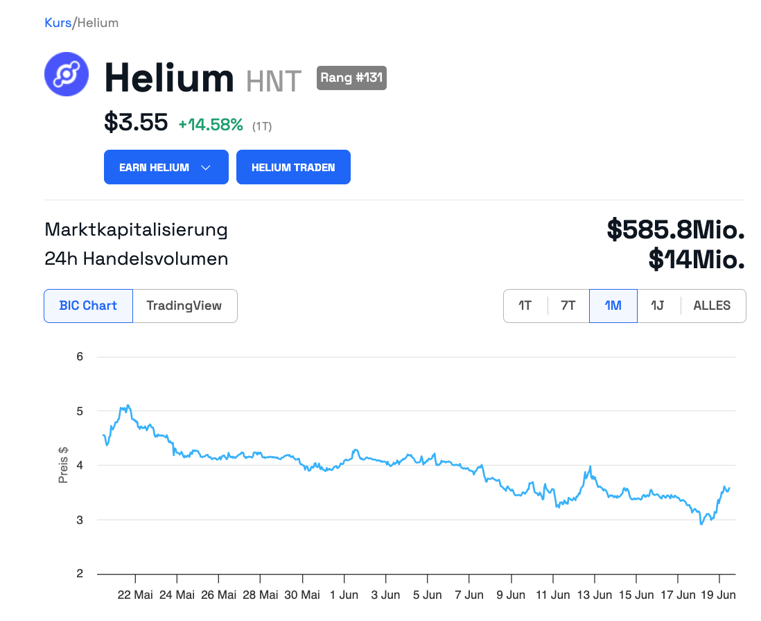 Der Helium (HNT) Kurs steigt