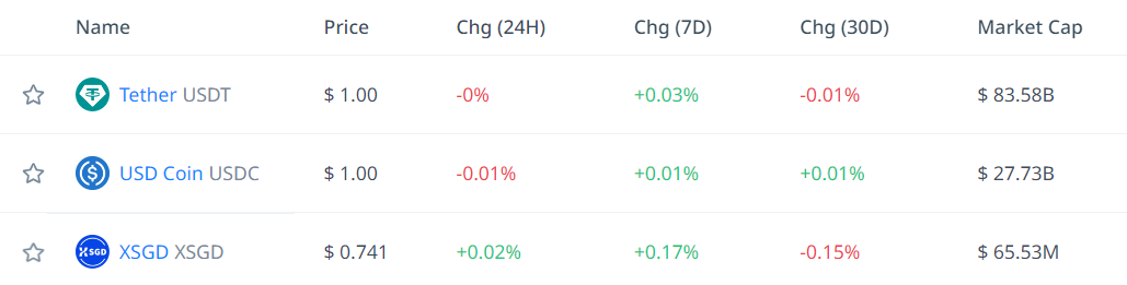 Des Weiteren enthält der Vorschlag einen interessanten Vergleich. Die Autoren stellen sowohl den in Singapur ausgegebenen XSGD-Stablecoin als auch USDT und USDC vor. Ihre Marktkapitalisierungen betragen 6,6 Millionen US-Dollar (XSGD) bzw. 110 Milliarden US-Dollar für USDT und USDC.