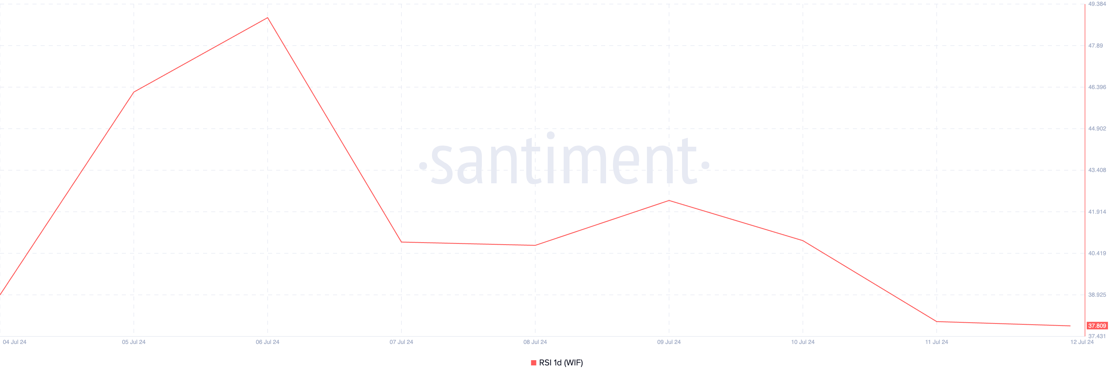 Sponsored SponsoredZum Zeitpunkt der Veröffentlichung liegt der RSI von WIF bei 37,80 in einem Abwärtstrend. Dieser Indikator misst die überkauften und überverkauften Marktbedingungen eines Vermögenswerts. Bei seinem aktuellen Wert zeigt der RSI von WIF, dass der Verkaufsdruck die Akkumulation überwiegt. Dies birgt das Risiko, dass WIF seine jüngsten Gewinne verliert, sobald die Käufer erschöpft sind.