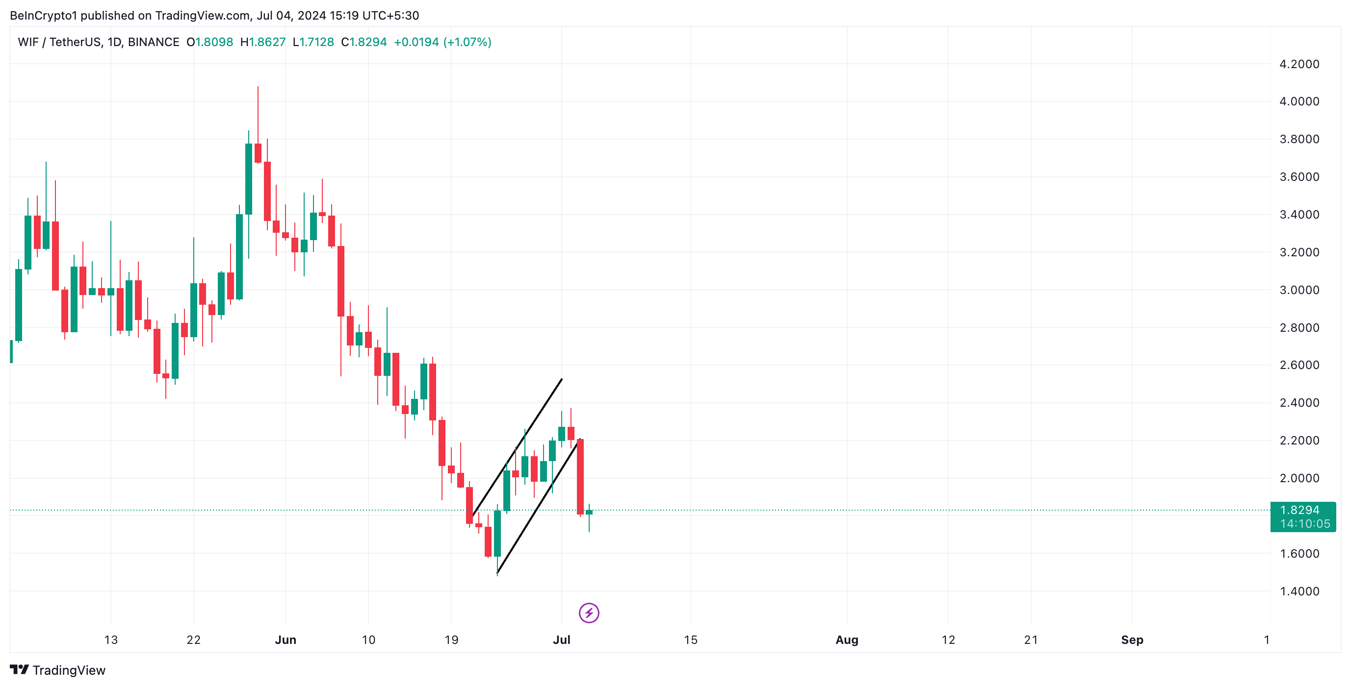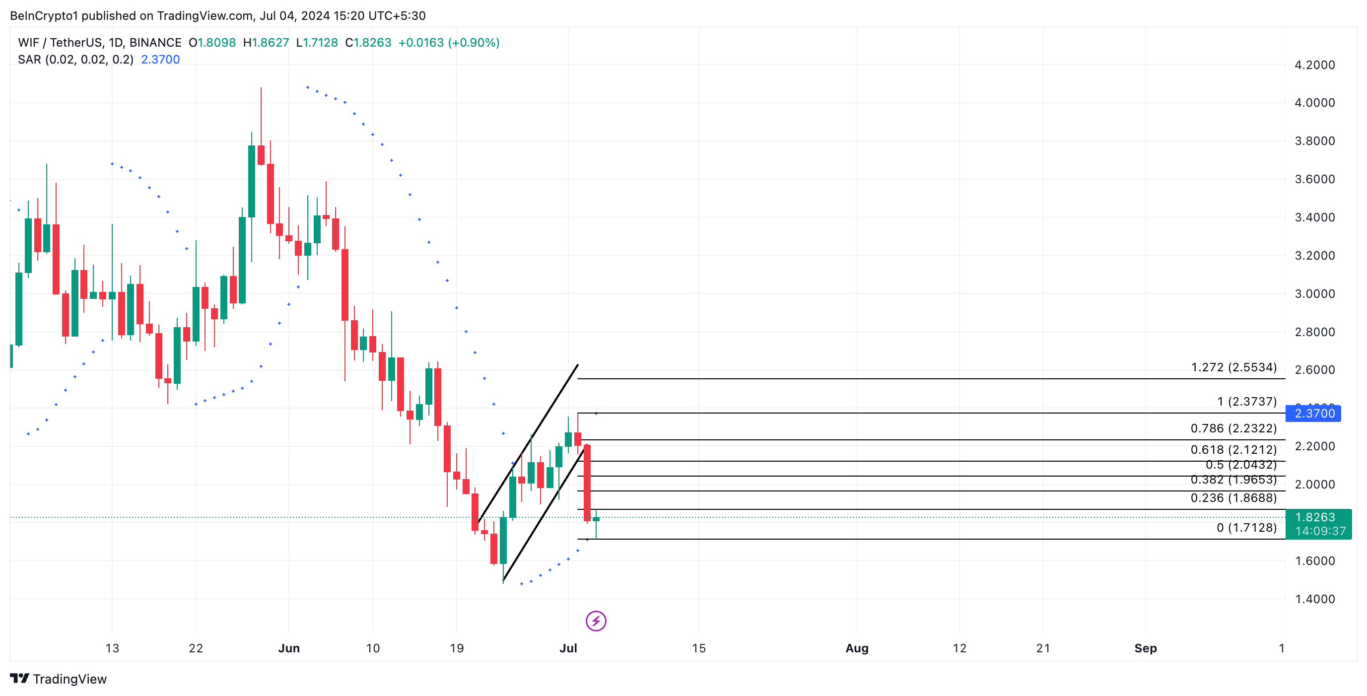 Sollte dies weiterhin der Fall sein, könnte der WIF-Kurs auf 1,71 USD fallen.