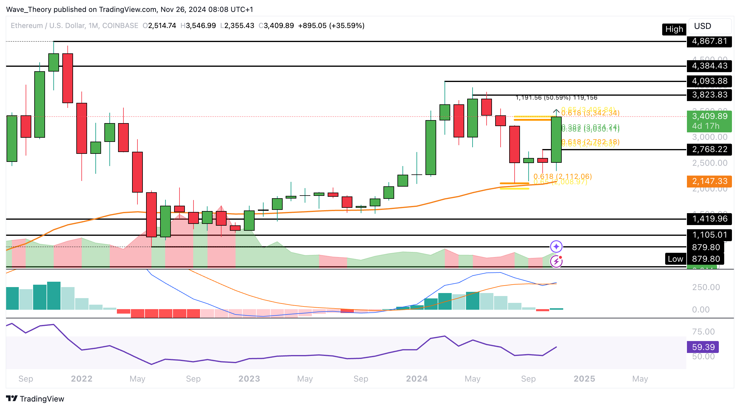 Bisher konnte der ETH Preis in diesem Monat über 50 % steigen. Dennoch ist er noch weit entfernt vom ATH bei rund 4.868 USD.