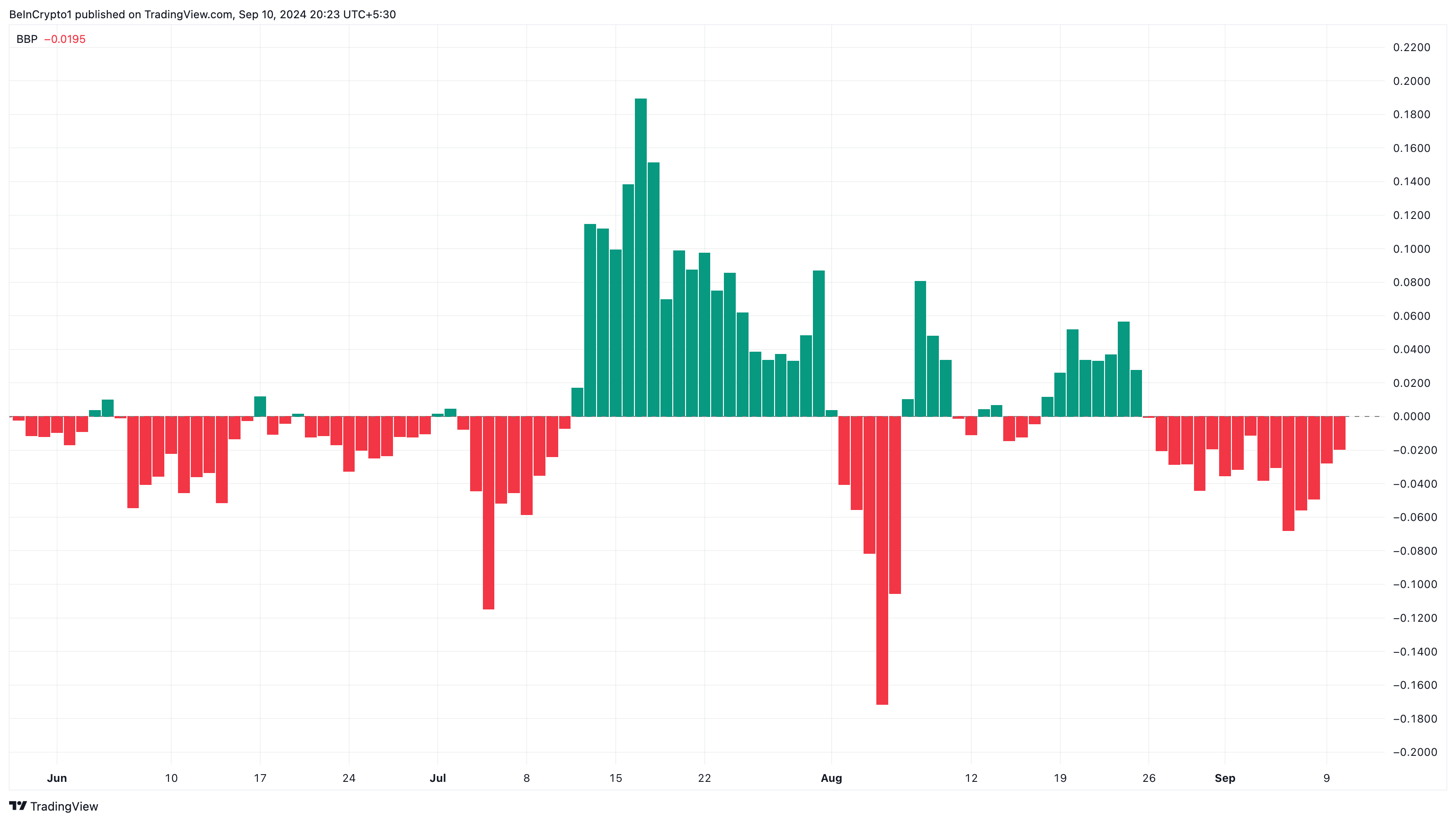Zweitens, der Bull Bear Power (BBP), ein Indikator, der die Stärke der gegensätzlichen Kräfte auf dem Markt misst, unterstützt die Tendenz. Wenn der BBP positiv ist, haben die Bullen mehr Kraft, was zu einem bemerkenswerten Kursanstieg führen könnte.