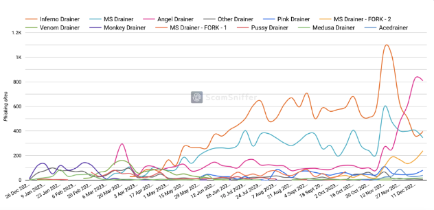 Laut dem Bedrohungserkennungsdienst Scam Sniffer stahl Inferno Drainer rund 81 Millionen USD von insgesamt 295 Millionen USD, die im vergangenen Jahr durch Hackerangriffe erbeutet wurden. Vor kurzem warnten die Behörden in Singapur vor einem neuen Software-Kit, der im Darknet verkauft wird und das Leeren von Wallets erleichtert.