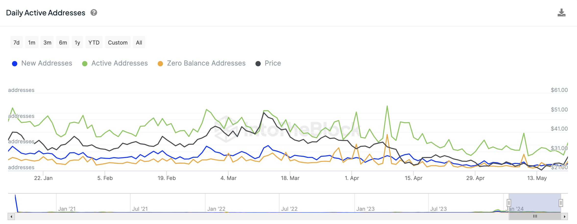Aktive Adressen steigen: Die Anzahl der aktiven Adressen hat zugenommen, was ein positiver Indikator für die Netzwerkaktivität und das Engagement ist.