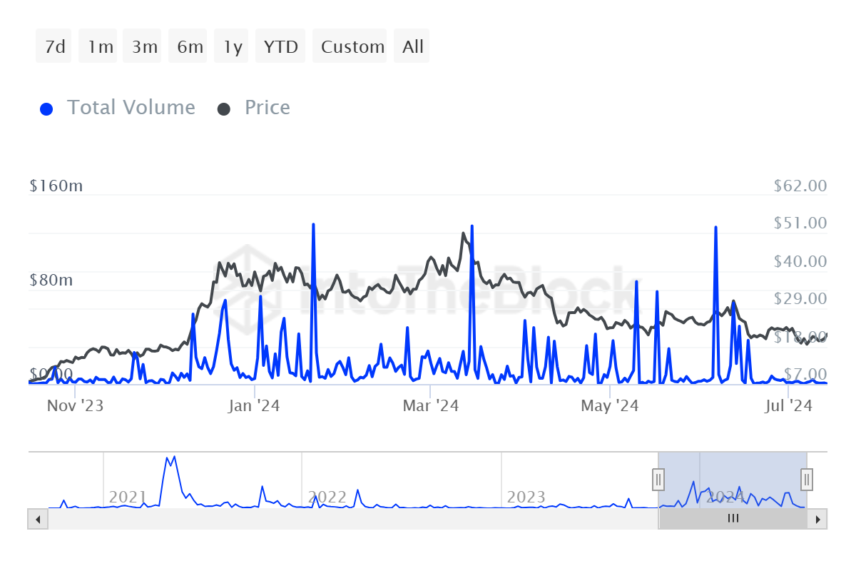 Dies ist der längste kontinuierliche Anstieg, der bei diesem Indikator verzeichnet wurde, was darauf hindeutet, dass Investoren dazu neigen, ihre INJ zu halten. Ein Rückgang bedeutet, dass die Investoren ihre Bestände bewegen, was zu höherer Volatilität im Kurs führt.