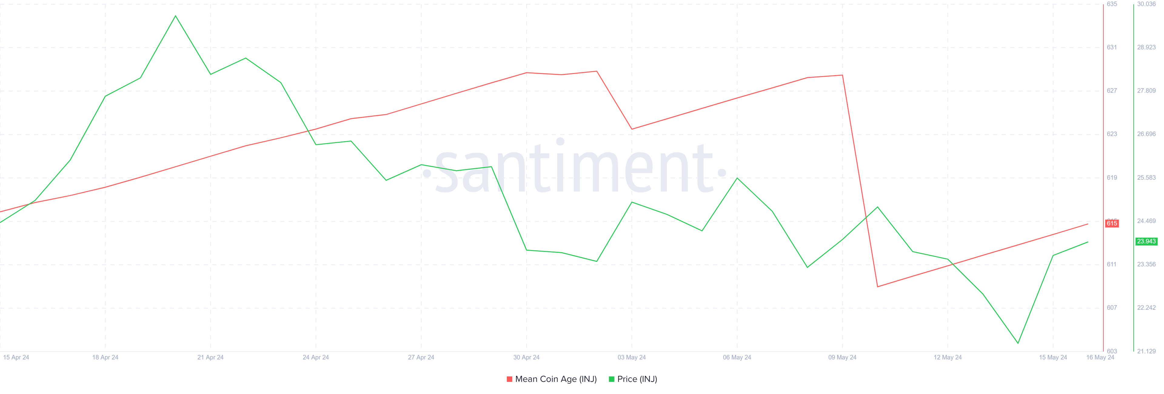 Ein steigendes Coin Alter lässt also darauf schließen, dass Krypto Anleger davon absehen zu verkaufen und es bevorzugen, ihre Bestände zu halten. Injective Investoren werden es wahrscheinlich vermeiden, ihre Vermögenswerte zu verkaufen, was eine schnellere Kurserholung ermöglicht.