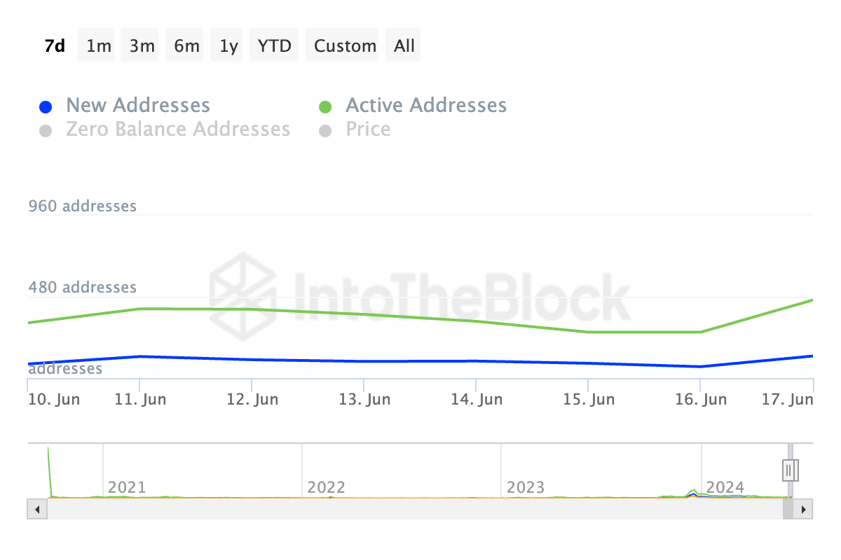 Interessanterweise ist der zweistellige Kursrückgang von INJ aufgetreten, obwohl die Netzwerkaktivität in den letzten sieben Tagen zugenommen hat.