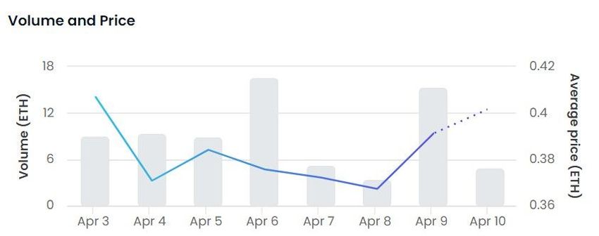 In den letzten 24 Stunden legte der Umsatz der Kollektion um 144 % zu und erreichte mit 27.647 US-Dollar einen neuen Spitzenwert. Auch die Zahl der damit verbundenen Transaktionen nahm deutlich zu (137 %) und stieg auf 38 an.