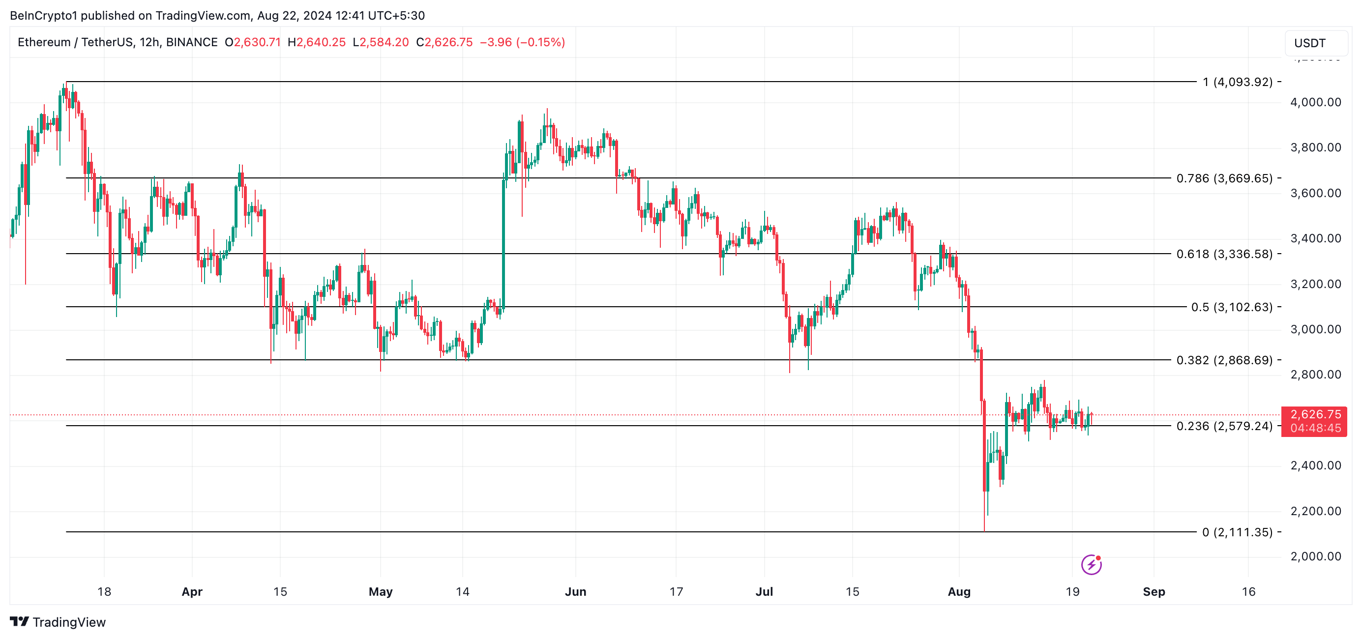 Zum Zeitpunkt der Veröffentlichung notiert ETH bei 2.627 USD, was einem Kursanstieg von einem Prozent in den letzten 24 Stunden entspricht, während das Handelsvolumen um neun Prozent gestiegen ist.