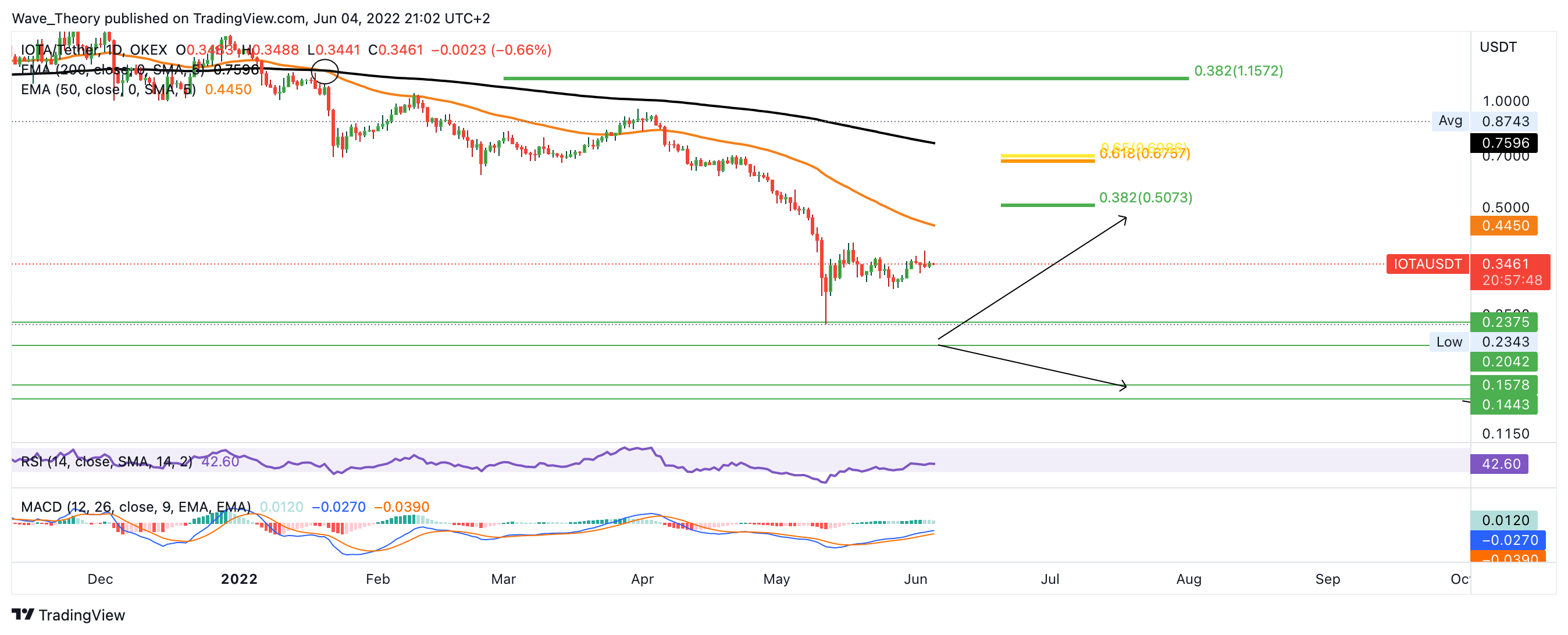 IOTA Kurs könnte zum 0,382 Fib Niveau bei rund 0,5 USD steigen
