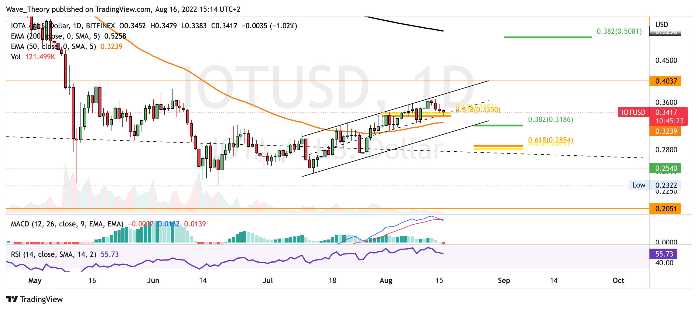 Der IOTA Kurs konnte den wichtigen Fibonacci Widerstand bei rund 0,33 USD brechen, von dem wir in der letzten IOTA Kurs Prognose geschrieben hatten: