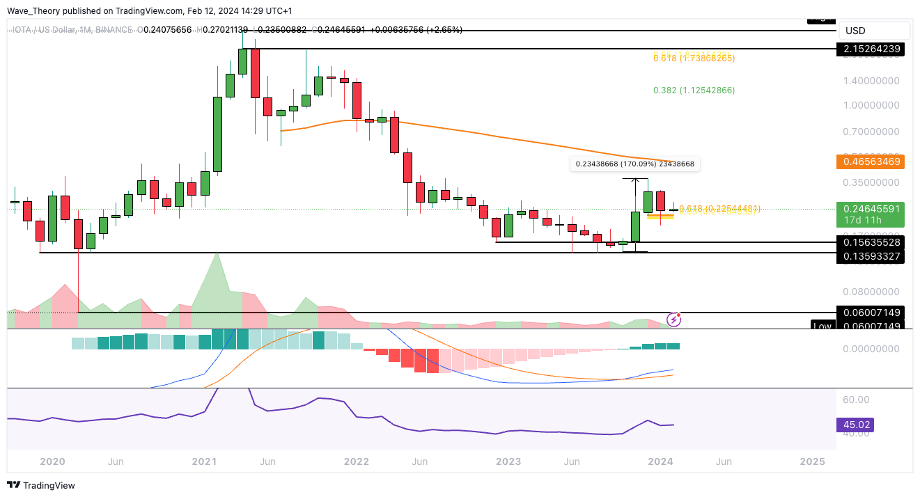 Der IOTA Kurs hält sich über der Golden Ratio Unterstützung bei rund 0,22 USD