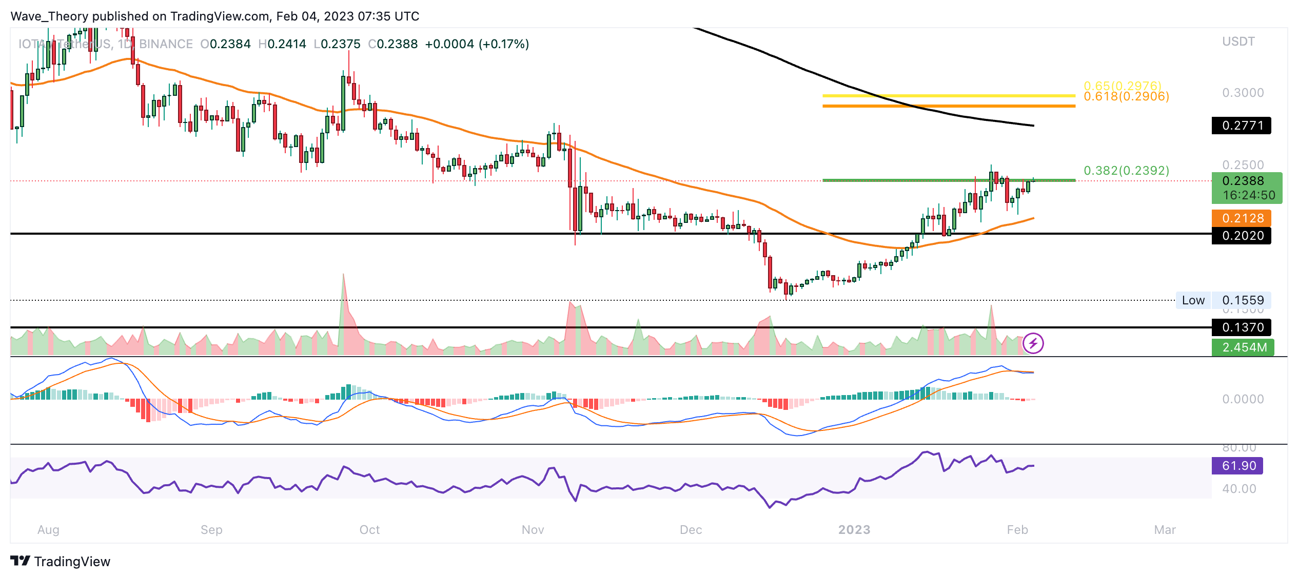 Der IOTA Preis erreicht signifikanten Fib Widerstand bei rund 0,239 USD