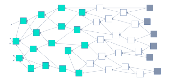 Im Vergleich zum Bitcoin-Netzwerk verwendet IOTA keine reine Blockchain, sondern eine neue Distributed Ledger Technologie (DLT) namens Tangle. Ein Tangle ist- im Vergleich zur Blockchain- keine reine Aneinanderreihung von Blöcken, sondern ein “chaotischer azyklischer” Graph. Die Transaktionen werden validiert, indem vorherige Transaktionsteilnehmer die neue Transaktion validieren. Dabei fallen außerdem keine Transaktionsgebühren an.