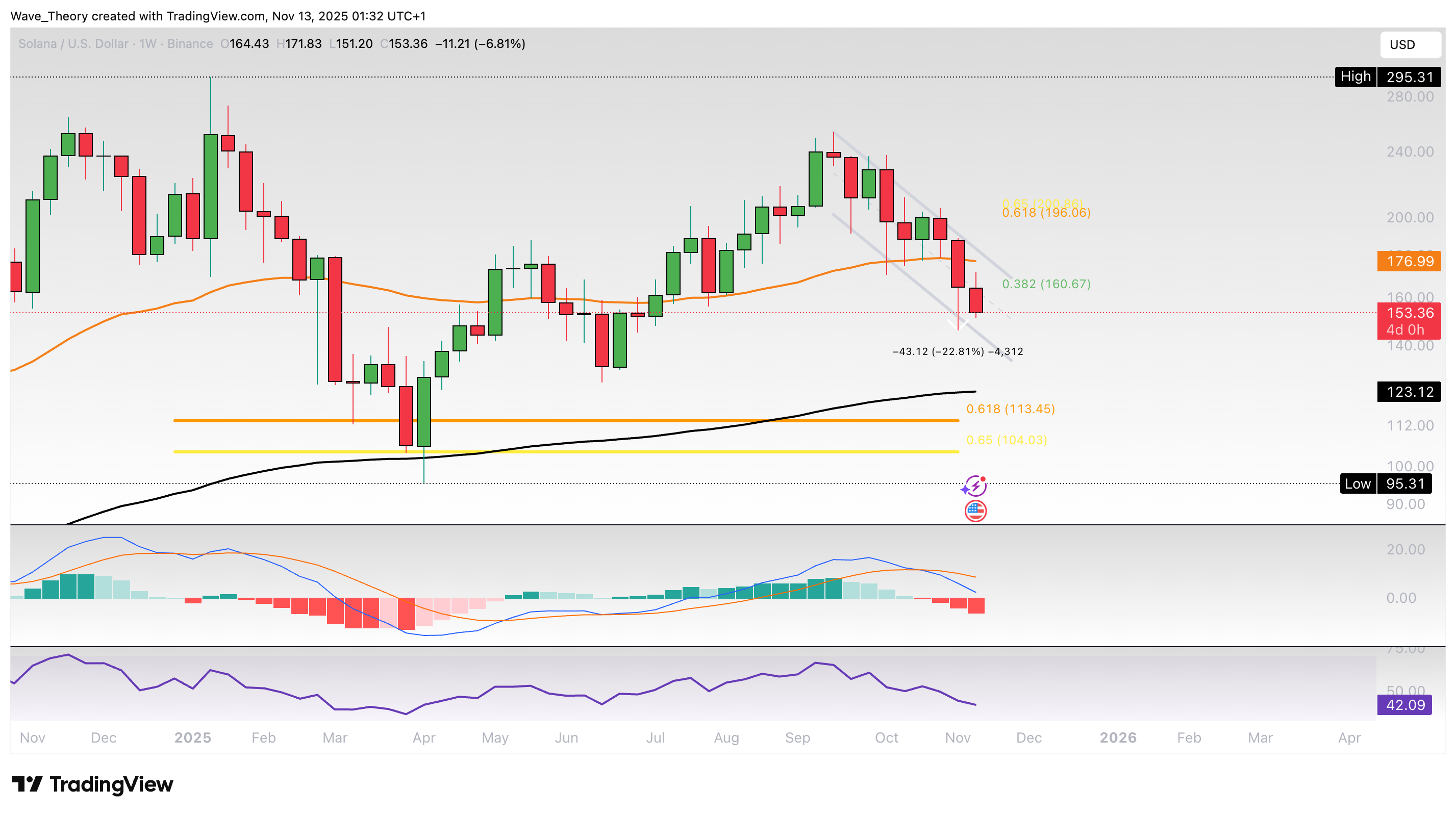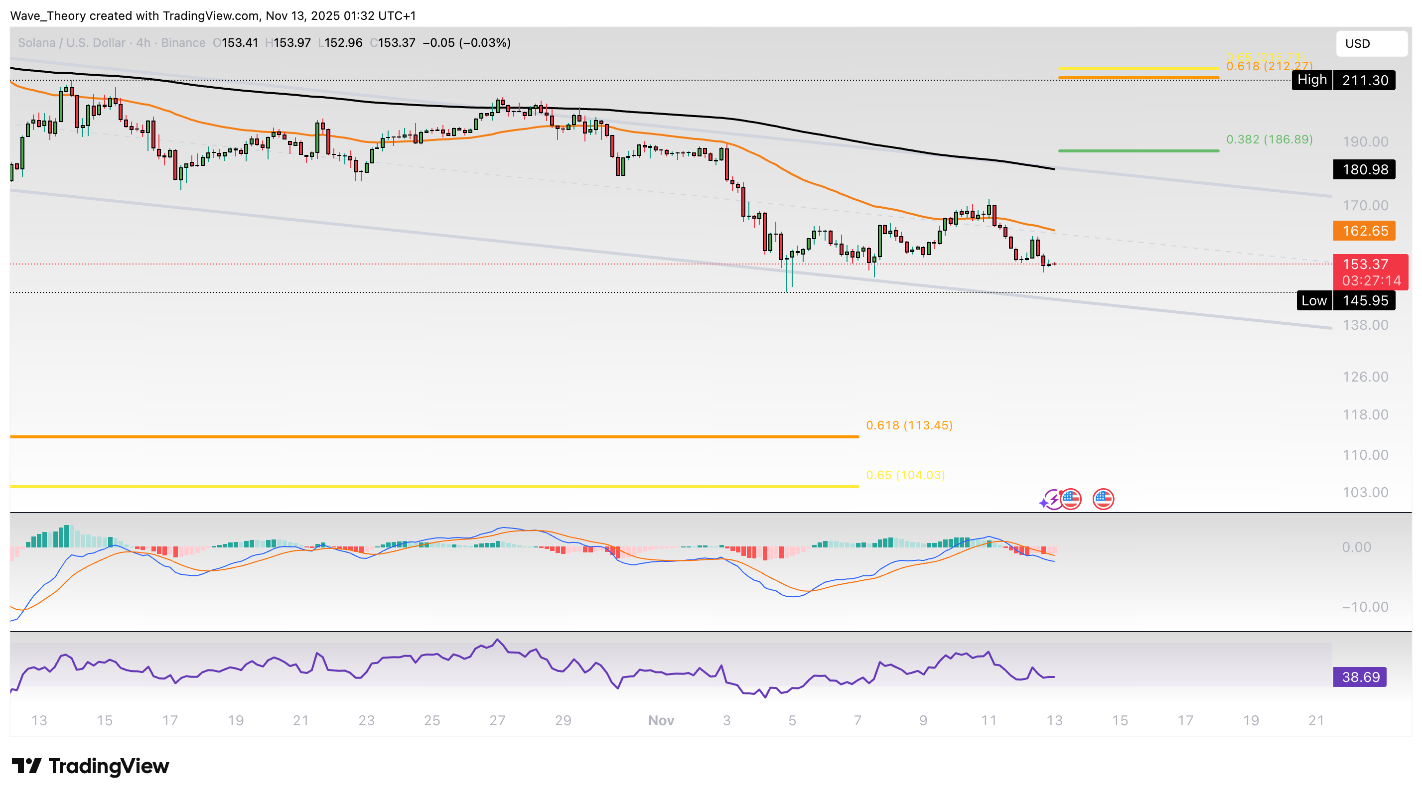 Solana-Prognose für Donnerstag, 13. November, 2025: Der Solana Kurs könnte im Tageschart jetzt ein Death Cross formen. Korrigiert der Kurs damit zur Golden Ratio bei rund 110 USD?