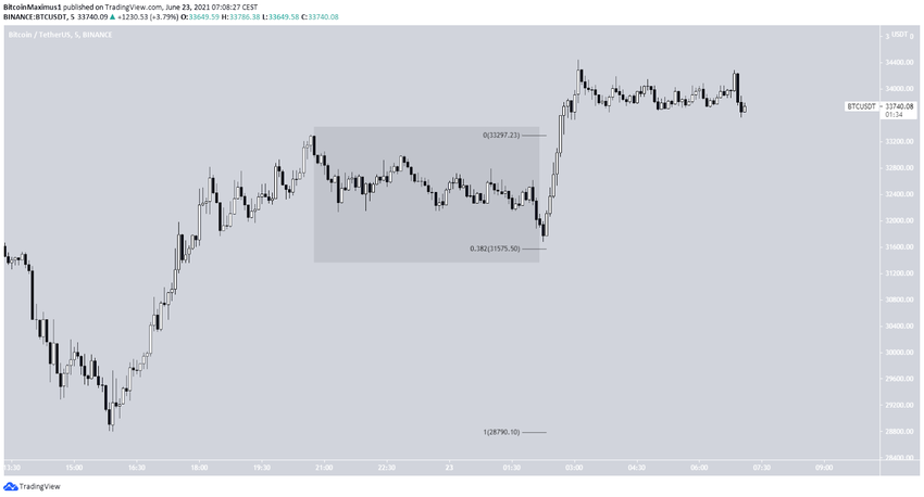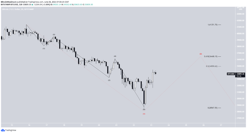 Eine andere Möglichkeit ist, dass die Abwärtsbewegung Teil der ersten Teilwelle war (rot). Wie dem auch sei, in beiden Szenarien steigt der Bitcoin Preis zumindest auf 35.000 USD und möglicherweise auf 36.500 USD an. Je nachdem, ob es sich bei der Aufwärtsbewegung um eine Three-Wave-Structure oder um eine Five-Wave-Structure handelt, wird sich der Trend weiterentwickeln.
