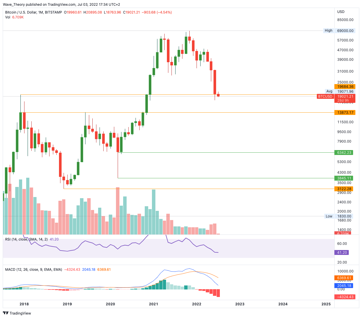 Bitcoin hat immer noch die Chance, zwischen 14.000 – 20.000 USD den finalen Boden zu finden und die Korrektur zu beenden. Sollte diese Unterstützung bärisch gebrochen werden, könnte Bitcoin bis 3.850 – 6.400 USD korrigieren.