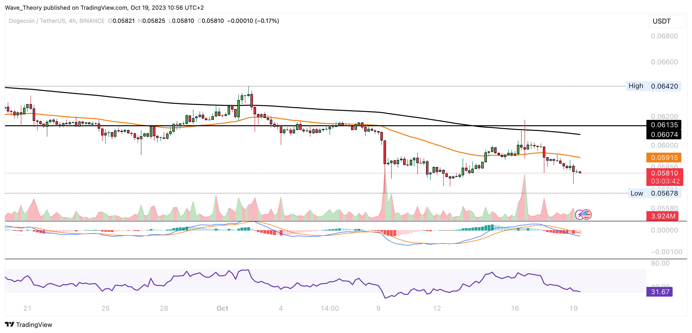 Der RSI erreicht dabei allmählich überverkaufte Regionen. Eine bullische Divergenz zeichnet er jedoch nicht ab. Der Dogecoin Kurs Trend bleibt eindeutig bärisch.