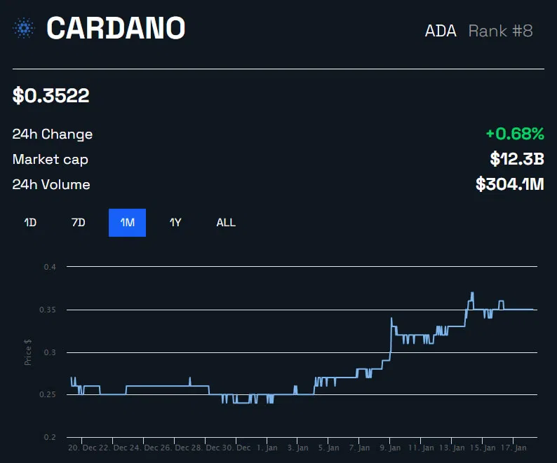 Der ADA-Kurs zeigte in den letzten Tagen wenig Bewegung und hielt sich bei etwa 0,35 US-Dollar. In den vergangenen zwei Wochen jedoch verzeichnete er einen beeindruckenden Anstieg von 40 %.