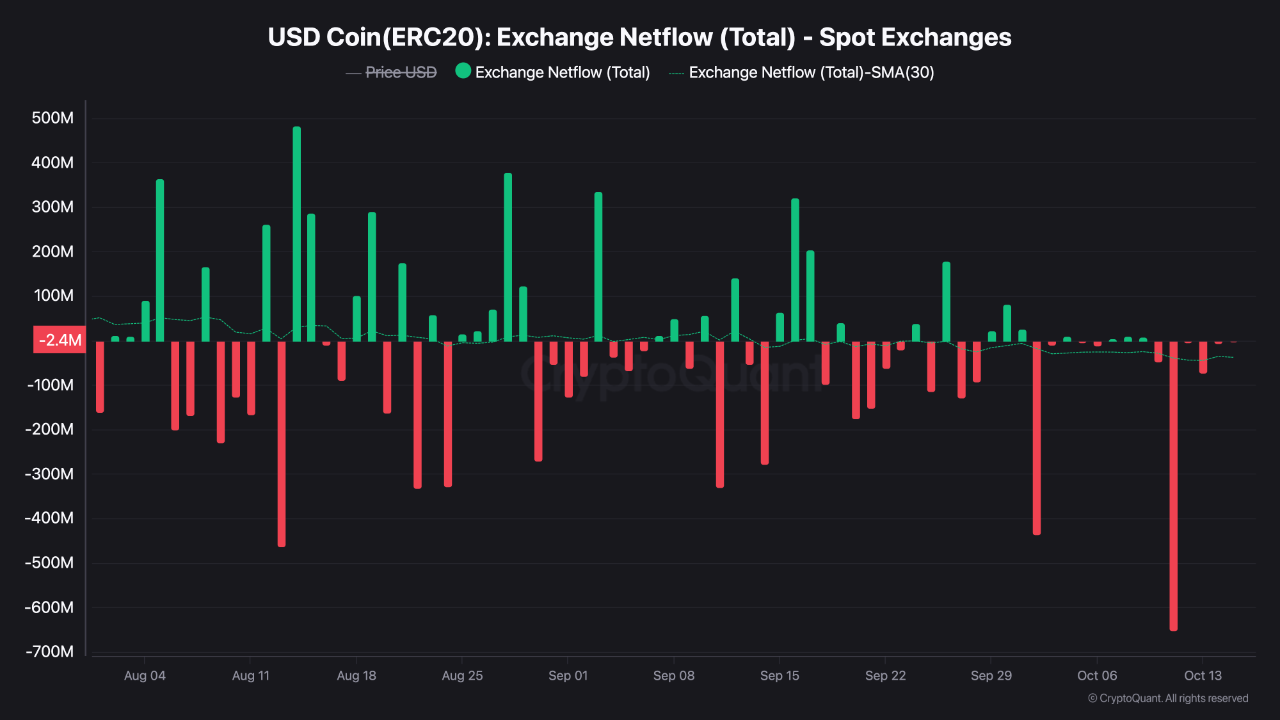 TeddyVision hob zwei unterschiedliche Trends vom 1. August bis Mitte Oktober 2025 hervor. Eine Analyse des 30-Tage-SMA der Stablecoin-Nettozuflüsse zu Börsen zeigt, dass das Kapital für tatsächliche Asset-Käufe abgenommen hat, während die Liquidität, die gehebelte Derivate wie Futures und unbefristete Verträge unterstützt, zugenommen hat.