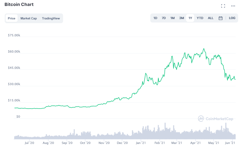 Nach dem Allzeithoch bei einem Bitcoin Preis bei über 64.000 US-Dollar, ist der BTC Kurs um 43 Prozent eingestürzt. Seit Mitte April rangiert die älteste Kryptowährung allerdings zwischen 40.000 US-Dollar und 35.000 US-Dollar.