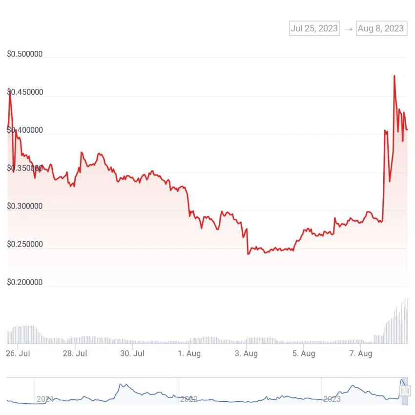 SponsoredBRICK, das repräsentative Token des r/Fortnite-Subreddit, schoss laut Coingecko in den vergangenen 24 Stunden sogar um 112,8 % in die Höhe. Nachdem der Token kurzzeitig ein Allzeithoch von 0,07 USD erreicht hatte, hält er sich aktuell bei etwa 0,054 USD.
