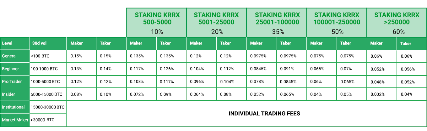 Konkret wird auf der Plattform jedes Konto den Kategorien General, Beginner, Pro Trader, Insider, Institutional und Market Maker zugeordnet. Darüber hinaus wird Kyrrex Rabatte auf alle Handelsgebühren anbieten.
