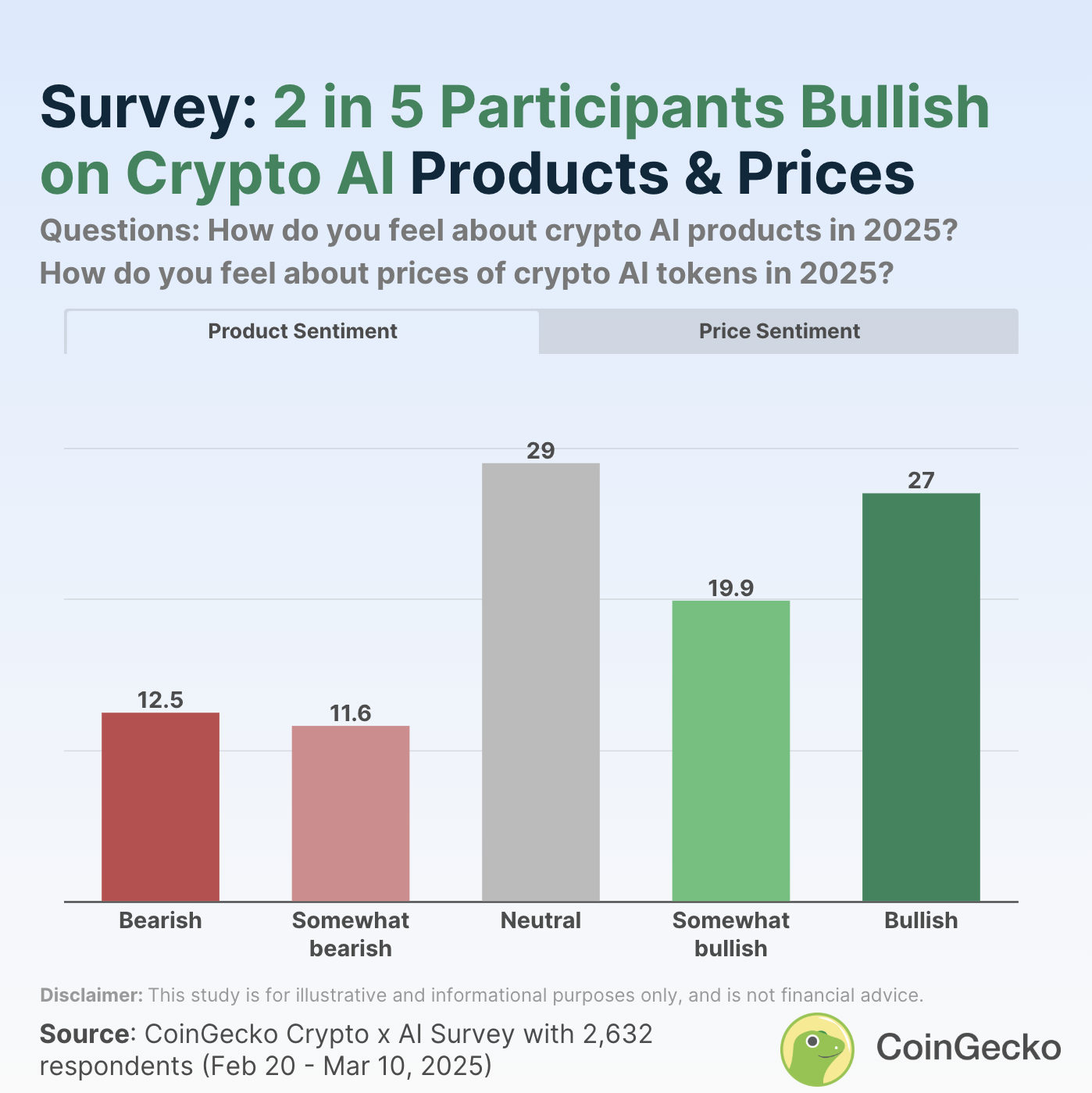 Sie betonte weiter, dass diese Marktstimmungen möglicherweise eine Erwartung widerspiegeln, dass Krypto-KI über konzeptionelle Stadien hinausgeht und sich als funktionaler Sektor entwickelt. Trotz der Kluft zwischen bullischen und bärischen Perspektiven behielt ein bedeutender Teil der Befragten eine neutrale Haltung bei. 29,0 % und 29,3 % der Teilnehmer wählten eine neutrale Position zu Produkten und Token-Kursen, jeweils.
