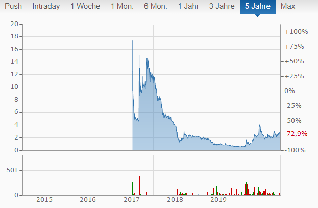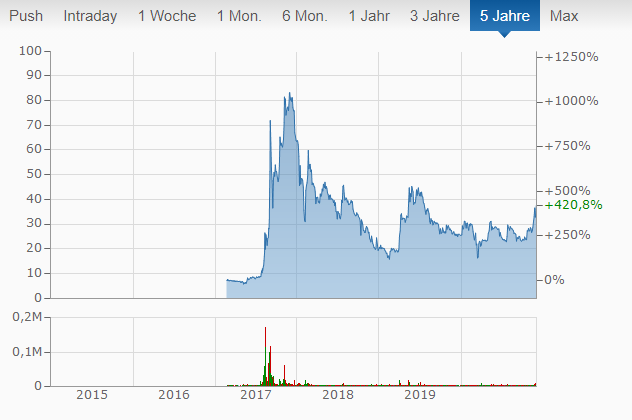 Im längerfristigen Rückblick zeigt sich deutlich ein Wachstum von 420 Prozent. Zeitweilig stieg der Aktienpreis sogar noch höher, das war im Jahr 2017. Allerdings scheint das Wertpapier der Bitcoin Group erneut Anlauf zu nehmen und sich zu bemühen das letzte Allzeithoch zu knacken.