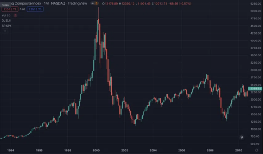 SponsoredIm Jahr 2000 fiel der Aktienindex Nasdaq Composite um 75 %.