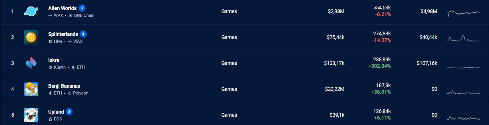 Das mit zeitweise 600.000 aktiven Adressen derzeit beliebteste Spiel dieser Art ist Alien Worlds, das bereits einige erfolgversprechende Elemente vereint: Trilium (TLM), der native Token des Alien Worlds Metaverses ist ein fungibler ERC-20-Token, der in der gesamten virtuellen Welt nutzbar ist. Darüber hinaus integriert das Spiel sowohl NFT- als auch DeFi-Elemente. Hier erfährst du mehr über das Projekt.