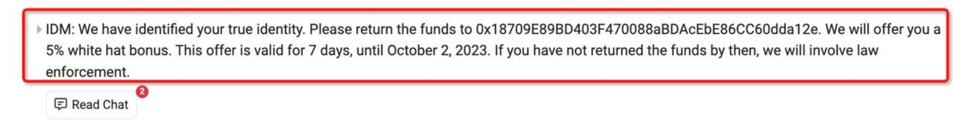 Darüber hinaus bietet Justin Sun dem Hacker eine Belohnung in Höhe von 5 % der gestohlenen Gelder (rund 400.000 US-Dollar) an, falls dieser die gestohlenen Ethereum innerhalb von sieben Tagen (bis zum 7. Oktober 2023) zurückgibt. Wie Huobi in einer Message auf der Blockchain von Ethereum schreibt, kennt die Börse zudem angeblich sogar die Identität des Hackers
