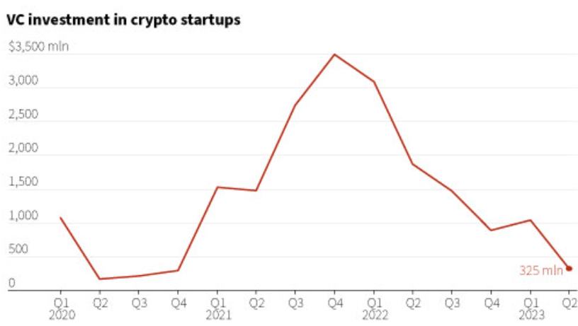 Scheinbar sitzen die Narben des katastrophalen Krypto-Jahres 2022 noch immer tief bei den Risikokapitalgebern. Denn während sich der Bitcoin-Preis erholt und in diesem Jahr um etwa 55 % zulegte, gehen die Investitionen in Krypto-Startups laut dem Datenunternehmen PitchBook das fünfte Quartal infolge zurück – von 3,5 Milliarden auf 500 Millionen USD.