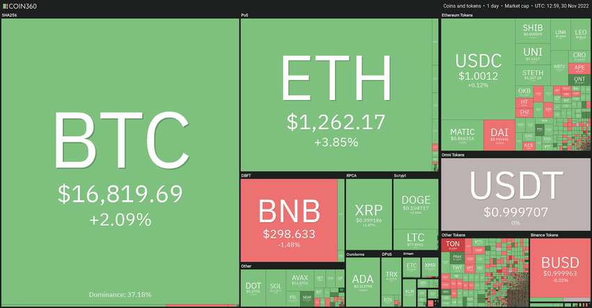 Marktanalysten zufolge wird der Vorsitzende Powell bei der nächsten Sitzung der US-Notenbank wichtige Informationen über die nächsten Schritte der FED verkünden. In den vergangenen vier Sitzungen erhöhte die Zentralbank den Leitzins um 0,75 Basispunkte, um die Inflation einzudämmen. Nun wird erwartet, dass die FED das Tempo bei der Straffung ihrer Geldpolitik mit einer Anhebung um 50 Basispunkte verlangsamt. Daher gab es eine Rallye auf den Finanz- und auf den Krypto-Märkten.